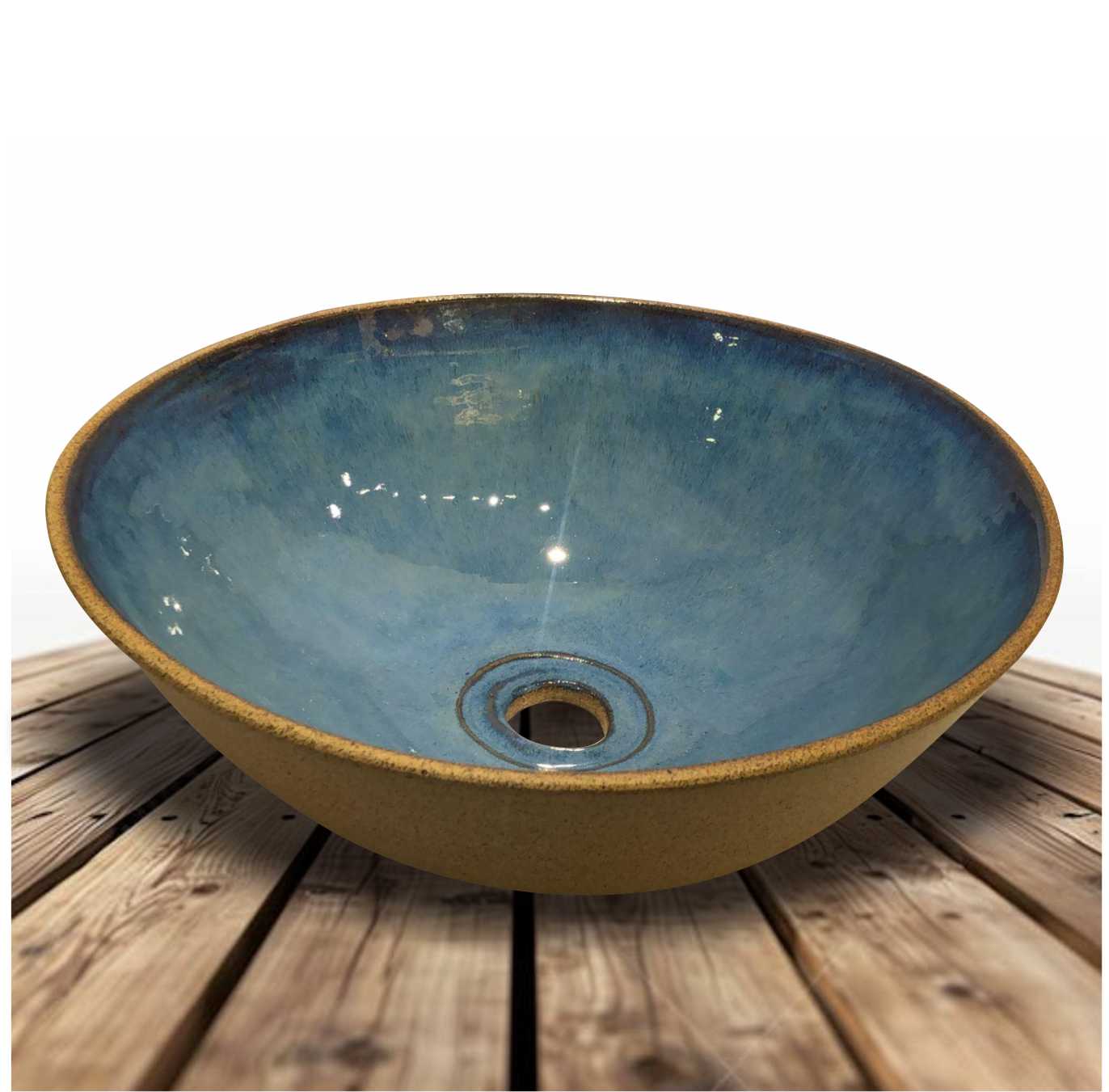Cuba de sobrepor artesanal em cerâmica de alta temperatura, conferindo resistência e impermeabilização. 100% materiais atóxicos.