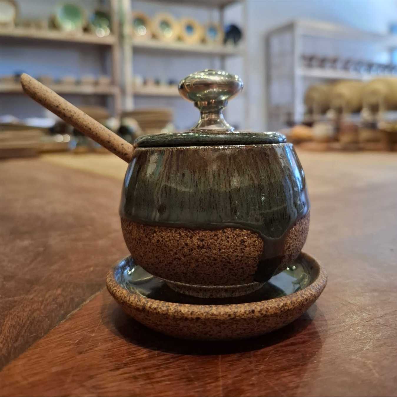 Pimenteira artesanal em cerâmica de alta temperatura, conferindo resistência e impermeabilização. Com detalhe em estanho. 100% materiais atóxicos.