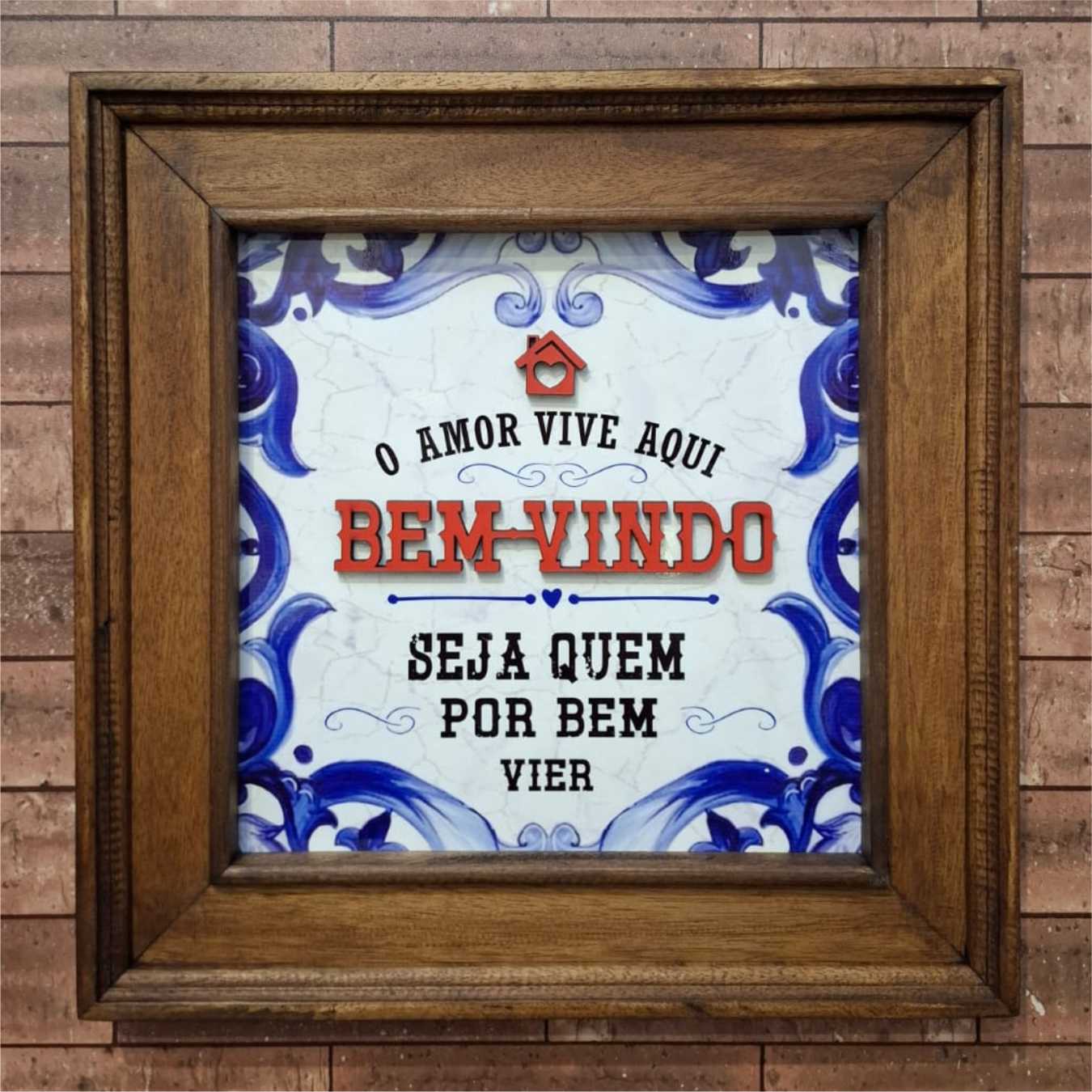 Quadro Artesanal em azulejo estampado, aplique MDF e moldura em madeira maciça reciclada. Ideal para decorar seus ambientes com bom gosto e criatividade. Nossos quadros são indicados para quem deseja objetos exclusivos e artesanais.