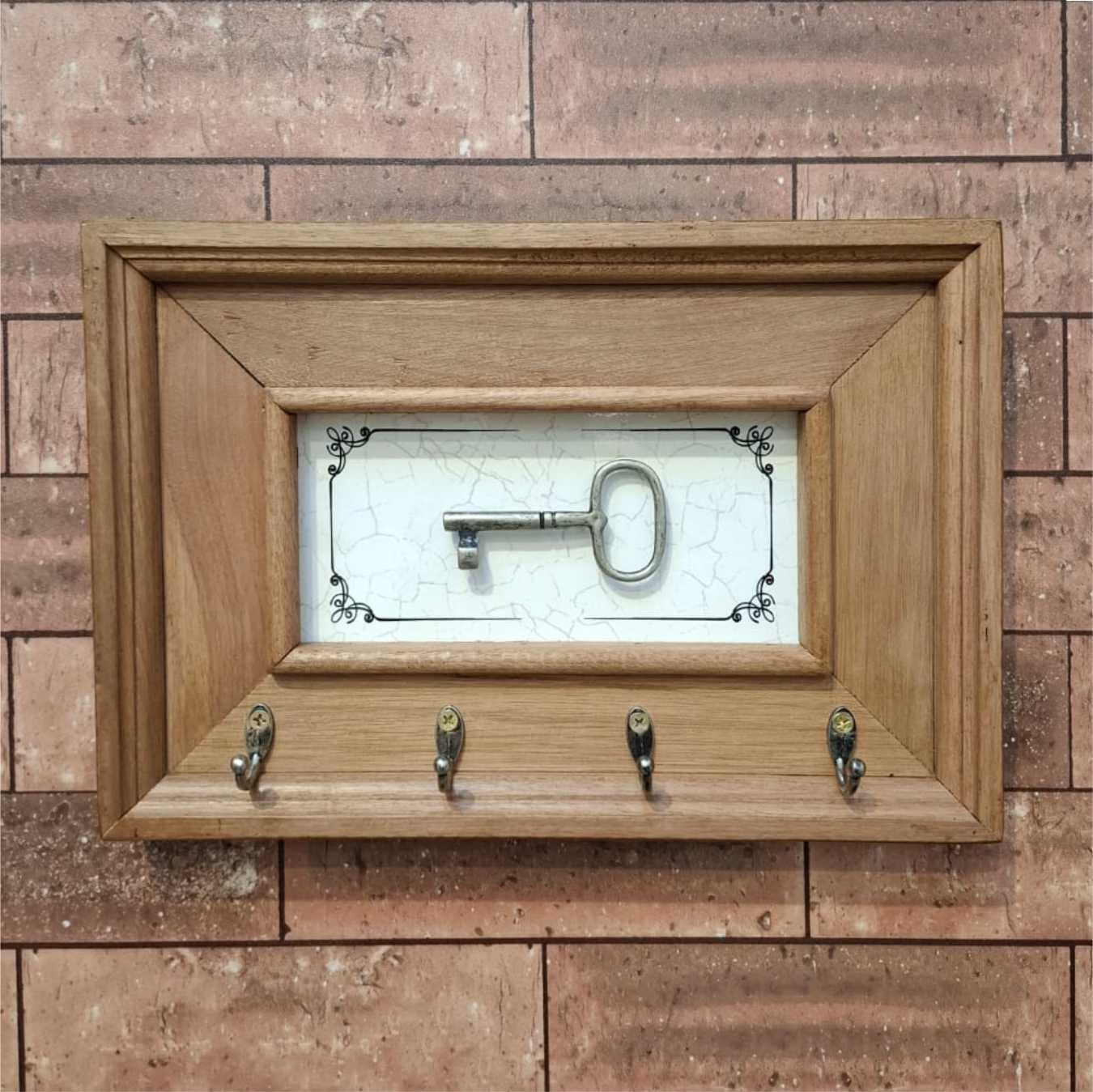 Quadro Porta Chaves em azulejo estampado, aplique metálico e moldura em madeira maciça reciclada. Ideal para decorar seus ambientes com bom gosto e criatividade. Nossos quadros são indicados para quem deseja objetos exclusivos e artesanais.