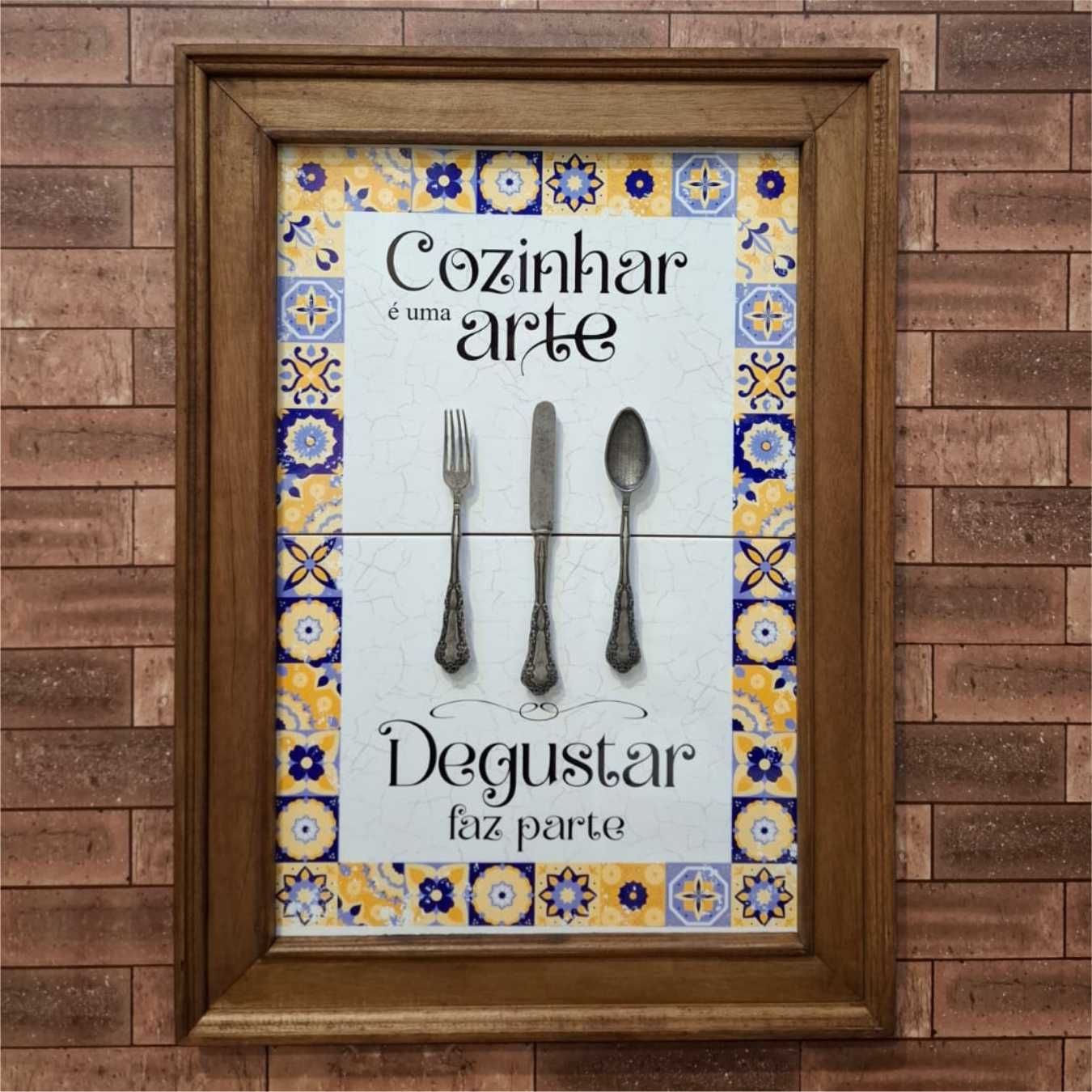 Quadro Artesanal em azulejo estampado, aplique metálico e moldura em madeira maciça reciclada. Ideal para decorar seus ambientes com bom gosto e criatividade. Nossos quadros são indicados para quem deseja objetos exclusivos e artesanais.