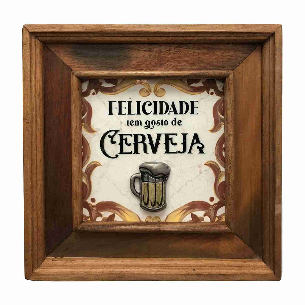 Quadro Artesanal em azulejo estampado, aplique metálico e moldura em madeira maciça reciclada. Ideal para decorar seus ambientes com bom gosto e criatividade. Nossos quadros são indicados para quem deseja objetos exclusivos e artesanais.